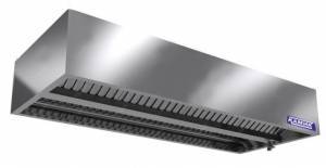 Вытяжной центральный коробчатый зонт 1800*2000*350 на сварной конструкции из пищевой нержавеющей стали AISI 430, установлены лабиринтные фильтры для очистки воздуха, возможна дополнительная комплектация, гарантия год