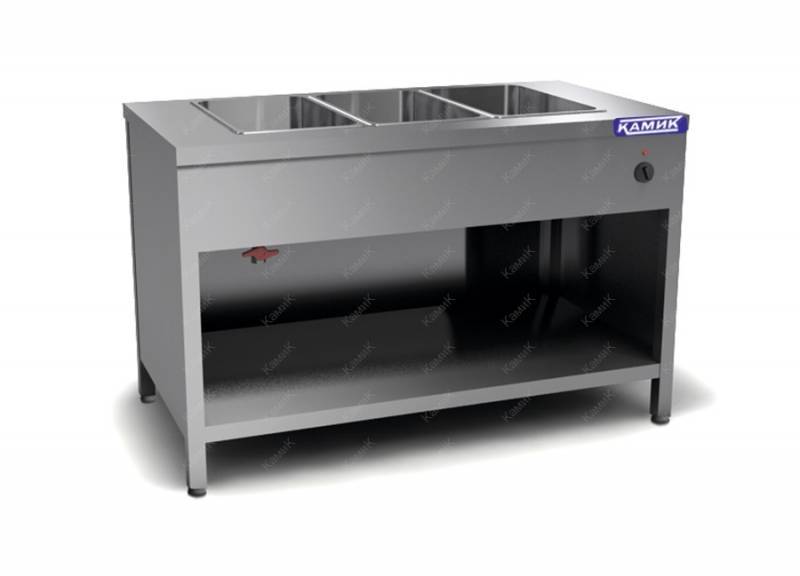 Кол-во GN 1/1-3, Корпус сталь AISI 430, GN1/1, два делителя 530 мм, полка, закрытый с 3-х сторон. Термостат справа., Двери: без дверей Мощность, кВт 2,7